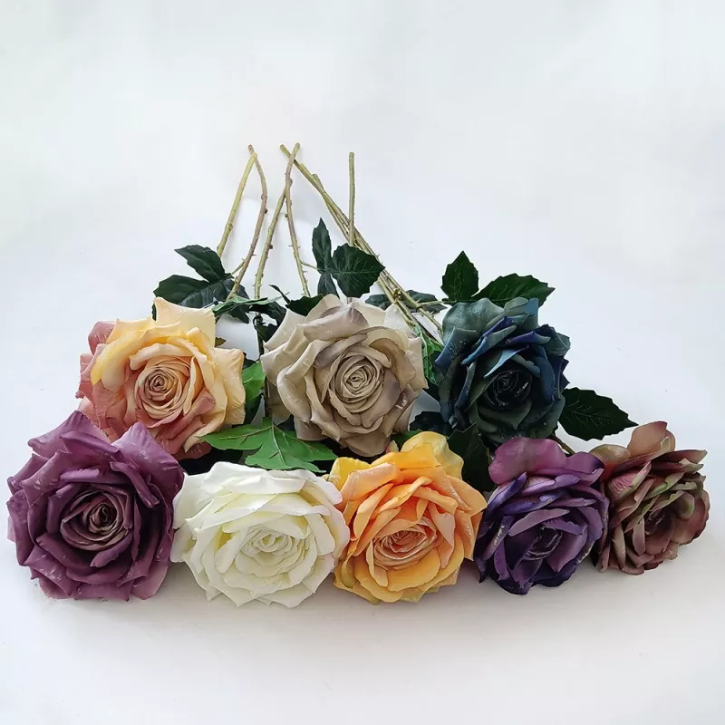 ● Spektrum warna retro 8-warna: Mawar buatan tunggal ini menyediakan 8 warna retro klasik seperti biru tua, ungu gelap, dan krem. Warna kelopaknya seperti waktu lama, dan ujung -ujungnya memiliki tekstur pudar alami. Ini mendukung nada retro eksklusif yang disesuaikan.