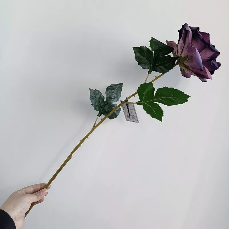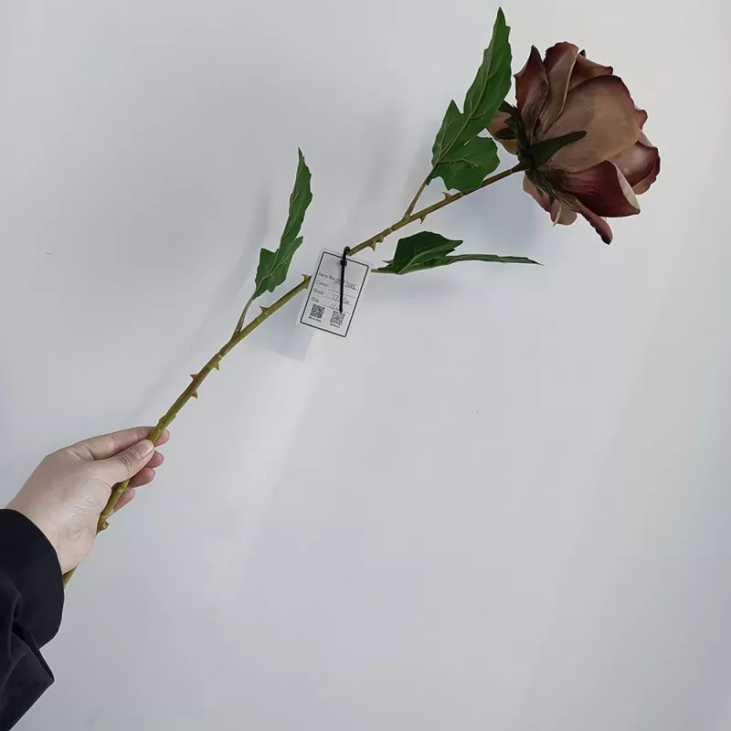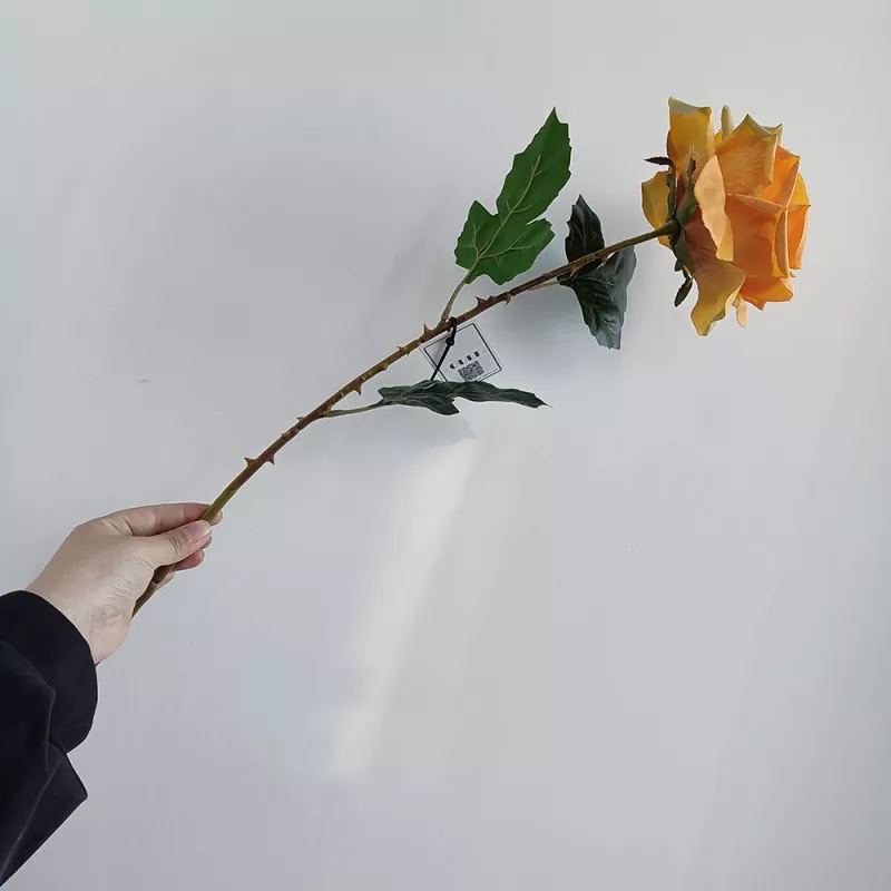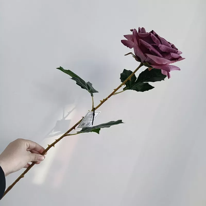 ● Bentuk tinggi 78cm: Mawar buatan tunggal ini memiliki batang bunga lurus dengan kepala bunga tiga dimensi berdiameter 15cm, mensimulasikan postur peregangan mawar asli. Ini cocok untuk tampilan vas yang berdiri di lantai atau sebagai adegan utama seni bunga, dengan mudah menciptakan rasa ritual dalam ruang retro.