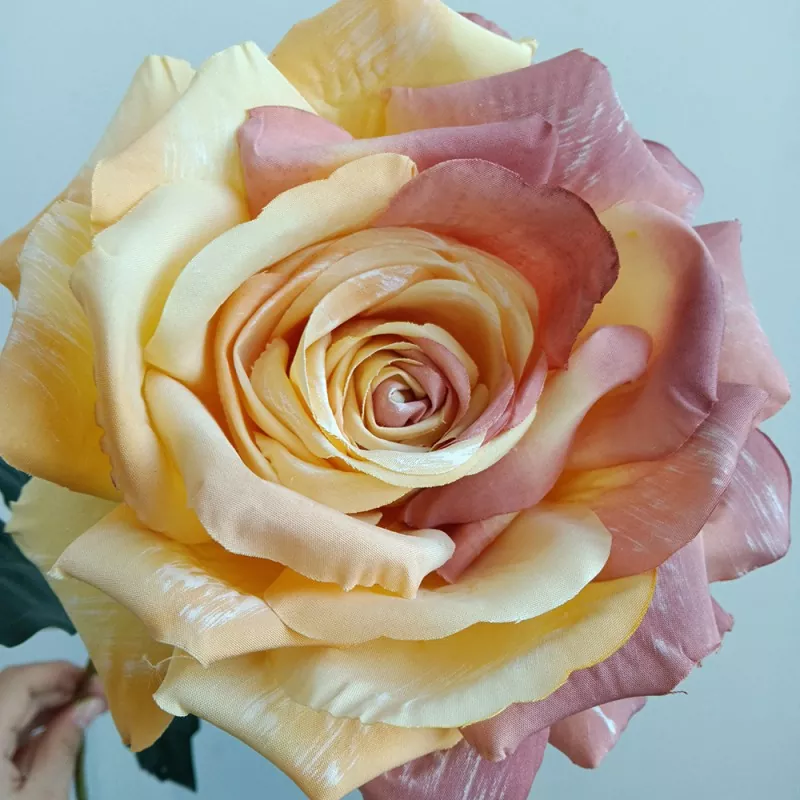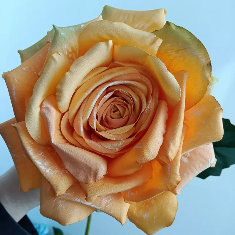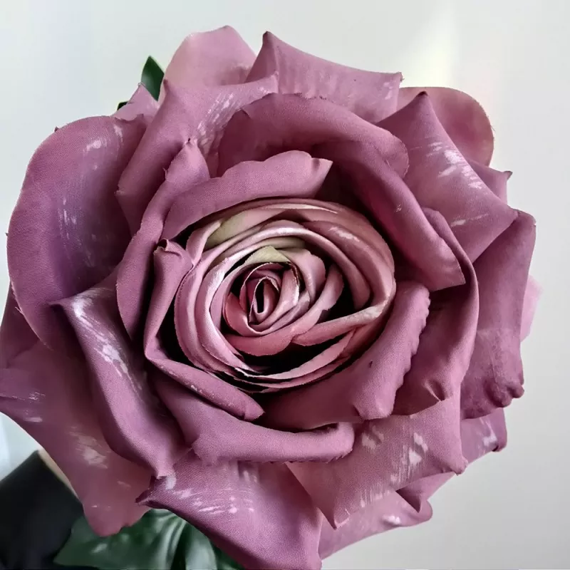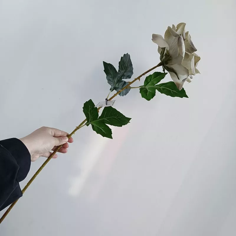 ● Tekstur kelopak sutra: Kami memilih kain sutra matte untuk mereplikasi sentuhan beludru dan kerutan halus kelopak mawar, membuat mawar buatan tunggal ini menghadirkan kilau pearlescent lembut di bawah sinar matahari, sebanding dengan kilau retro bunga asli.